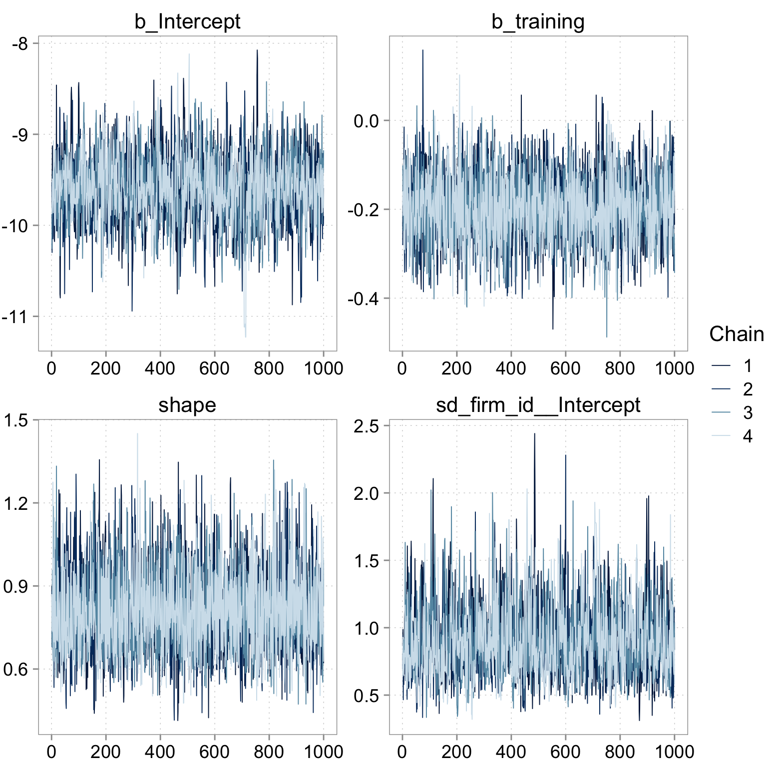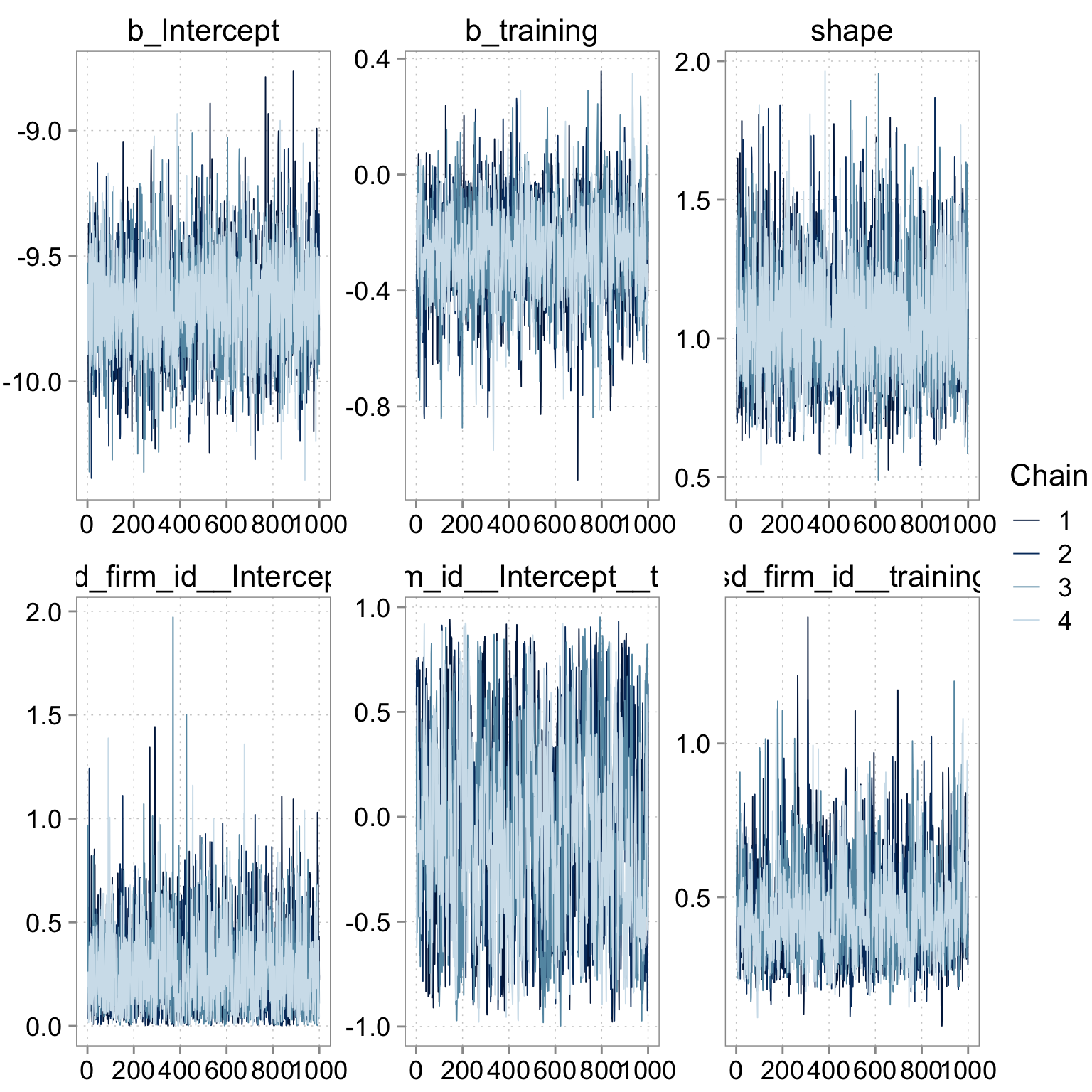 pars = c("b_Intercept", "b_training", "shape", "sd_firm_id__Intercept")