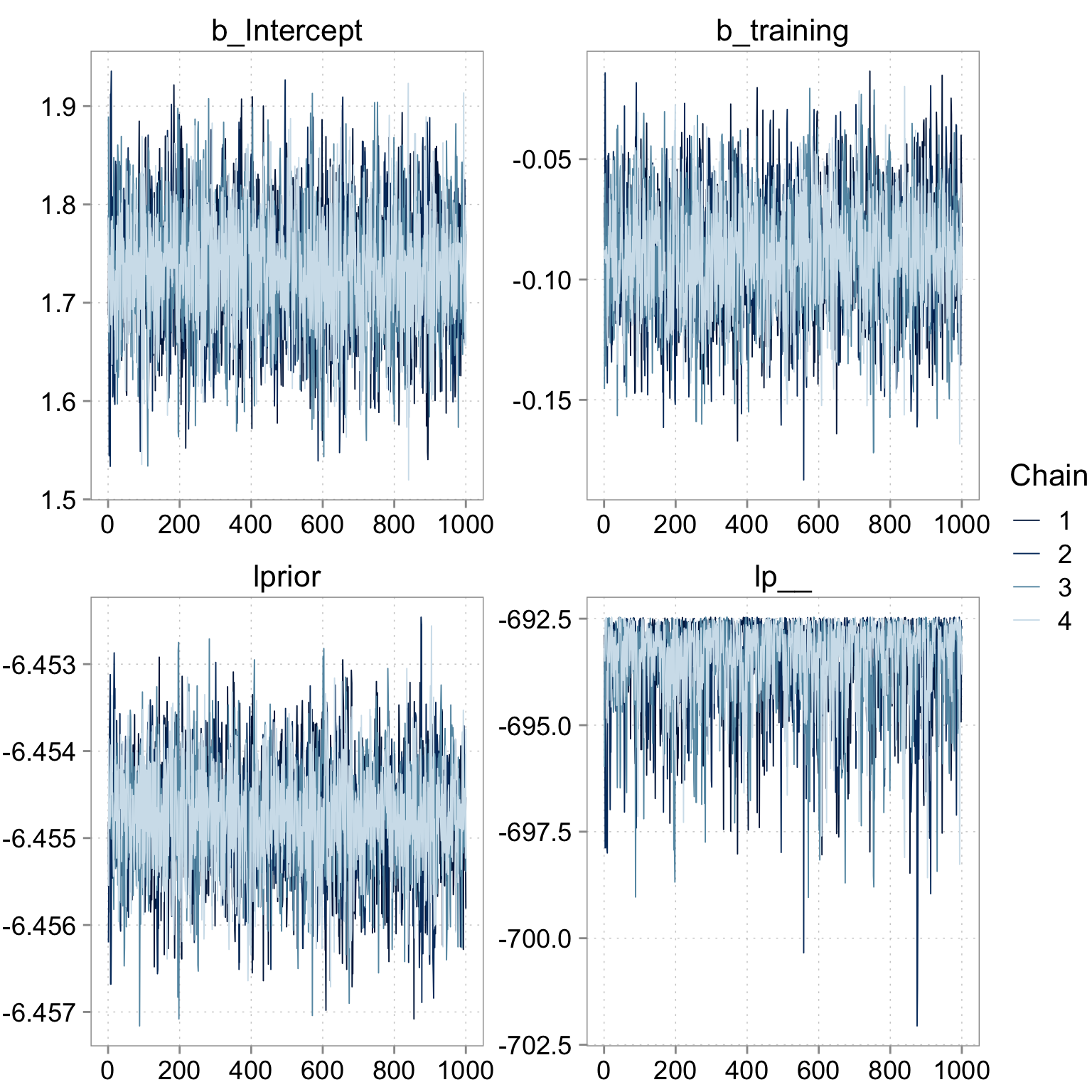 training -0.26 0.16 -0.61 0.04 1.00 1449 1623